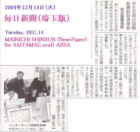 Calss1-6 (2002 school year) had collaboration with students at Von Steuben HS. Chicago, USA. They could shared much teenager's culture each other through e-mail exchange and video conference.